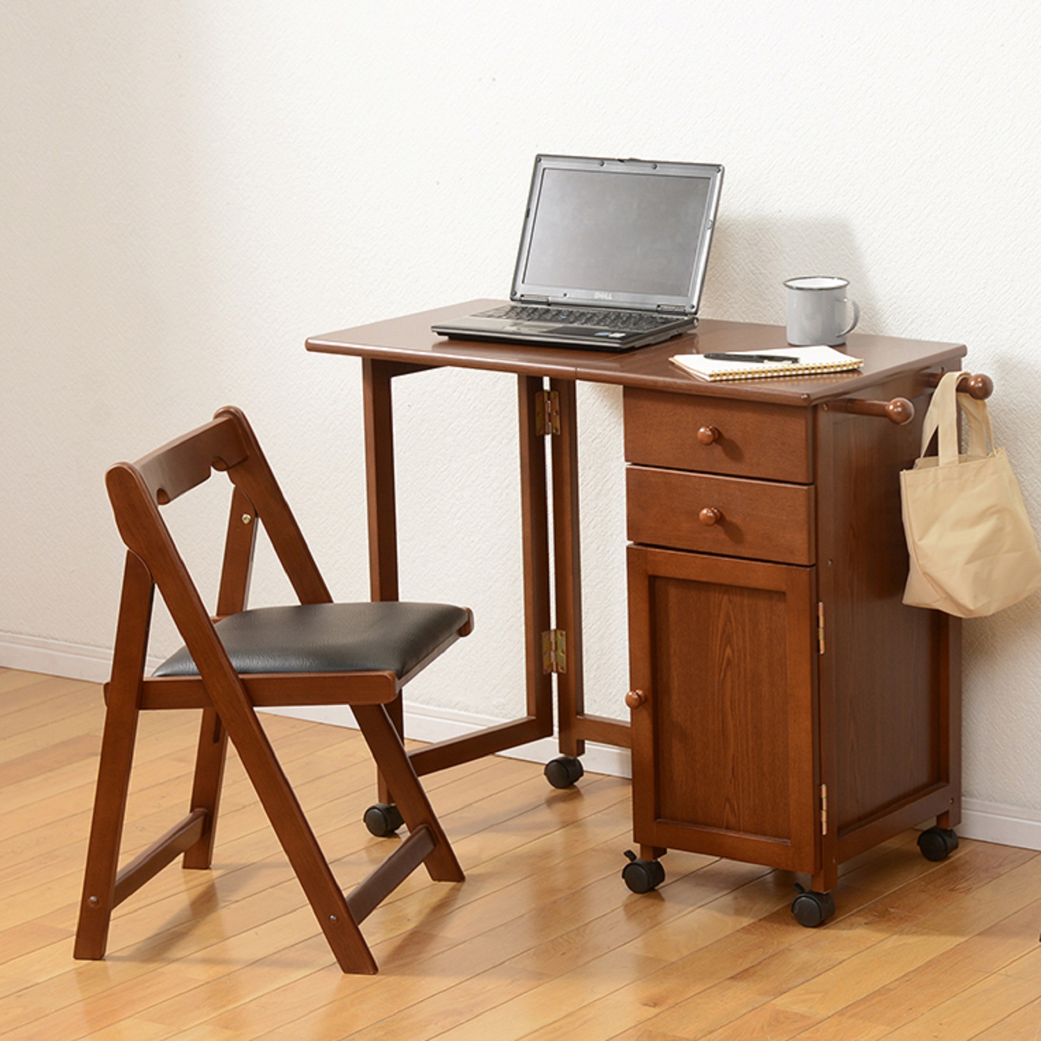 収納付き折りたたみパソコンデスク & チェア