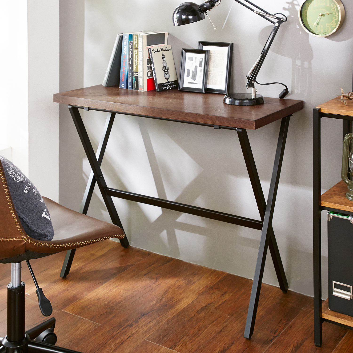 アイアンフレームのワークデスク & 折りたたみチェアセット