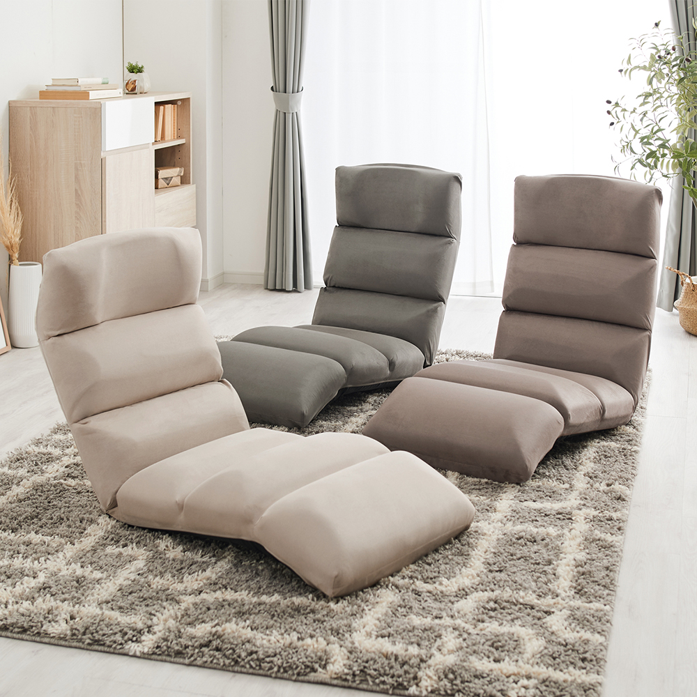 コンパクトなサイズの座椅子プライベートルームや一人暮らしのお部屋にぴったりふっくらとしたクッション性と滑らかな側地が心地よく、ゆったりリラックスできます。14段階リクライニング式で背もたれをお好みの角度に設定できます。7色からお好みのカラーを選んで)